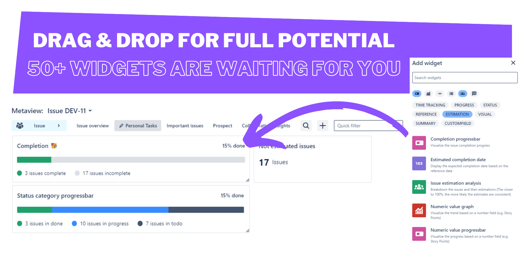 Receive a Metaview on projects, boards, dashboards, issues, globally and personally – everywhere.
